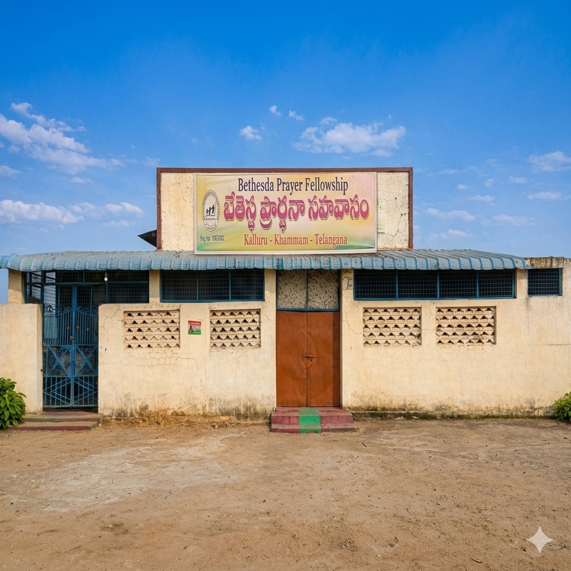 Bethesda Prayer Fellowship is a Christ‑centered Christian ministry established in 1990 in KALLURU, Khammam - 507209, Telangana, under the visionary leadership of Pastor Rev. thell nirmal kumar, Along with rev. hezekiah raju kanagala and rev. ebinager tella. From its humble beginnings, the ministry has grown and spread across the KALLURU, Khammam - 507209, Telangana. India, becoming a strong spiritual home for thousands of believers.